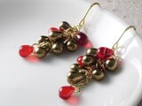 チェコ小粒ドロップのじゃらじゃらピアス 金あか