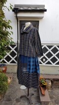 かすりのパッチワークが とっても丁寧で 美しく 色とりどりの生地も素敵にコラボ! 刺し子も 綺麗なラインで 美しい。 生地を 惜しげなく贅沢に使って 普通のパンツだと 2枚は 十分取れそう。 ワンピースにすれば とっても素敵になりそう。 プチプレゼントも 可愛い。