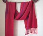 手織りカシミアマフラー・・ワンストライプ・赤紫