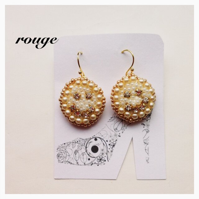 コットン糸、金メッキ、チェコビーズ、ガラスビーズ 、ラインストーン使用。