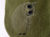生地に馴染むように手描きしたフクロウのヒナは