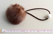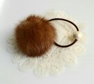 茶ミンクのファーボンボン、コットンパール付のヘアゴムです。
