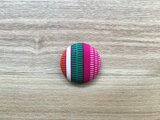 アフリカ布でくるみボタンのブローチを作りました。柄の切り抜き方にこだわり、1点1点丁寧に仕上げています。お気に入りの柄を見つけていただけたら嬉しいです。