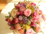 パープル系の小花やグリーンをさらにたくさんアレンジしています。