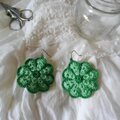 グリーン×ライトグリーンのレース糸で編んで、製作したデイジーのピアスです。