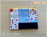 ブルー系の無地とパッチワークして作った、