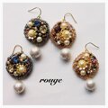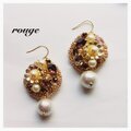 コットン糸、金メッキ、チェコビーズ、ガラスビーズ 、ラインストーン、コットンパール、使用。