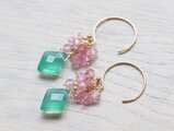 ピンクスピネル、ピンクのキュービックジルコニアを組み合わせたブーケピアスの新作です。