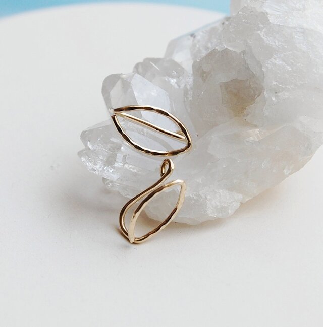 表面がタタキ加工を施した葉っぱの形をした可愛らしい少し変わった形のピアスは目を引く存在感でシャープでクールな雰囲気に耳元を装います。耳たぶの薄い部分から装着後お好みの場所までスライドさせてください。