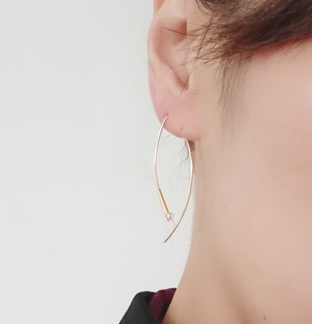 『360度』柔らかい印象のカーブディティールのオーバルピアス。