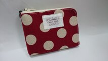 L字ファスナーミニお財布◆赤い水玉×リス・ブラウン