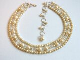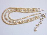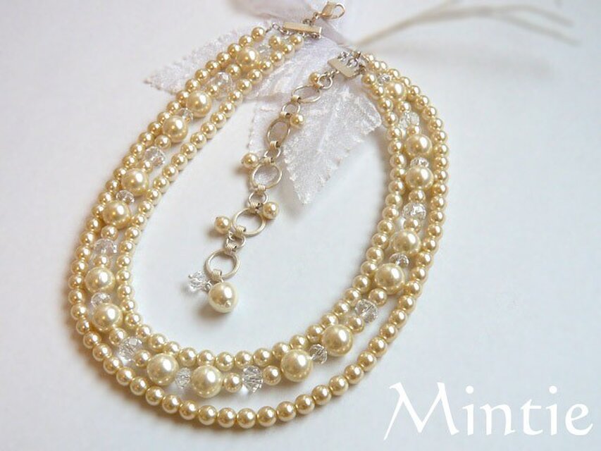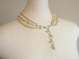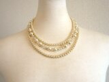 ホワイトカラーのメタルとガラスパールのボリュームが美しいネックレスです。