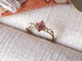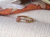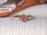 原石のピンクスピネルとグレーパールのリング