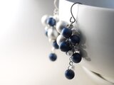 チェコガラスパールのじゃらじゃらピアス 銀あお