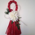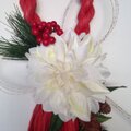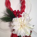 赤いしめ縄に白い大輪のダリアが映えるリースです。