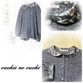 織込系のウール微ポリ混の柔らかツイードニットとリバティタナローンの完売人気柄Yosieヨシエのフラットのヘチマカラーのドルマンジャケットブラウスをお作りしました。