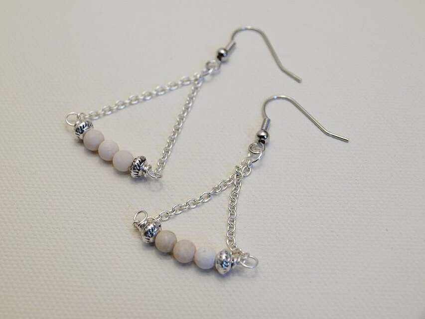 2本のチェーンで石を吊るしたトライアングルピアス.·˖*