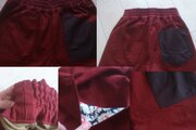 ポケットは共布の他に赤系の細かいチェック生地を使用。