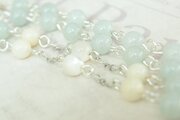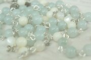 天然のミャンマー産翡翠(ジェダイト)を使用しています。透明感のある部分も含まれるとてもきれいなパステルグリーンカラーで上質な翡翠をベースに、ホワイトコーラル、宝石にも使用される高品質なホワイトシェルを使用したロザリオです。