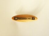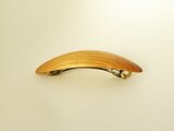 木工ロクロで大まかに形を削り出し、細部を調整。透明のウレタン樹脂塗料とミツロウワックスで仕上げてあるバレッタです。それぞれの木が持つ色や木目がそのままの作品です。