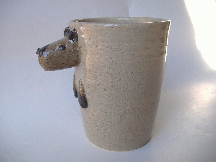 陶土の赤土と並土をブレンドした土でカップをロクロ成形し、