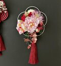 いつまでも美しいアーティフィシャルフラワーとタッセルの華やかな壁掛け飾り