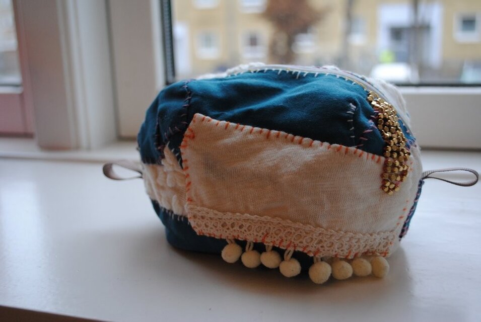 すべて手縫いで仕上げたポーチです。