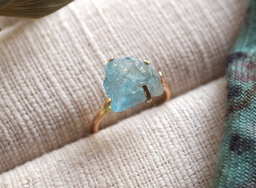 鉱物としてはエメラルトやモルガナイトと同じ「ベリル」の仲間です。微量の鉄分を内包することによって、美しい水色の石になります。