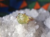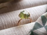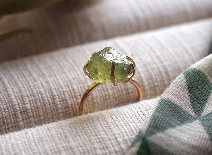 原石の質感そのままのグリーンガーネットを、ごろんとした存在感を活かしたリングにしました。