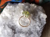落ち着いたライムグリーンと、ゼリーのような半透明が美しい大き目の石です。