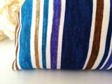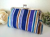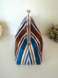 ぐっと落ち着いたカラーのストライプが印象的ながま口ポーチでございます