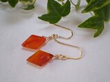 表面にカットが施されたダイヤ型のカーネリアンを一粒だけシンプルにピアスに仕立てました。