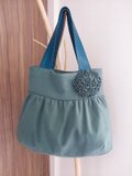 本革の持ち手と、お花のコサージュがアクセントのバッグ。