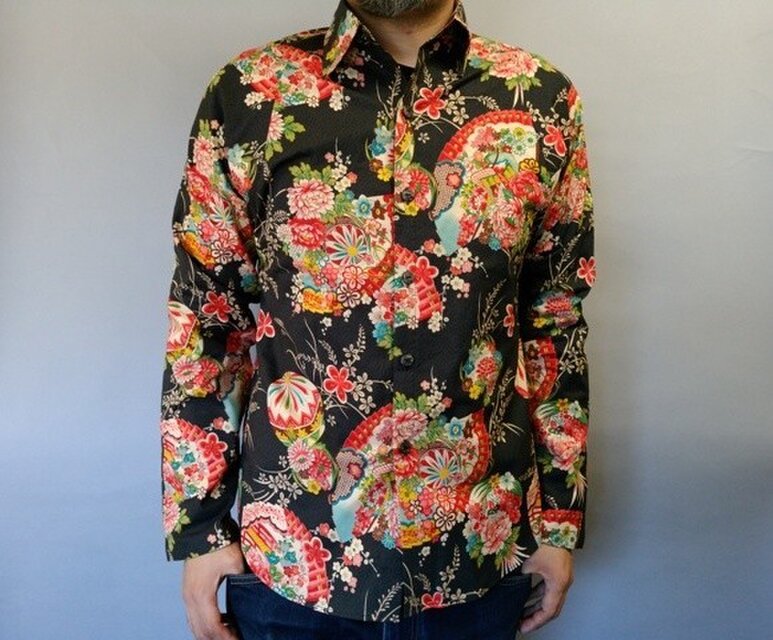 柔らかい綿生地に扇花模様が描かれた粋なシャツ
