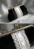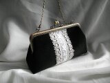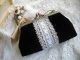 黒ビロードにアンティークレースをのせたがま口バッグ