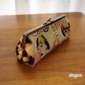 がま口のペンケースです。再販では、内布をストライプ柄にしました。