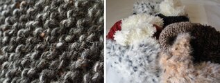 チクチクしないウール・ナイロン・レーヨン・ポリエステルで編みました。