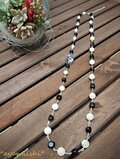 黒いオニキス、ホワイトシェルなど、白と黒の天然石を4種類、ワイヤーでつなげてあります。