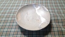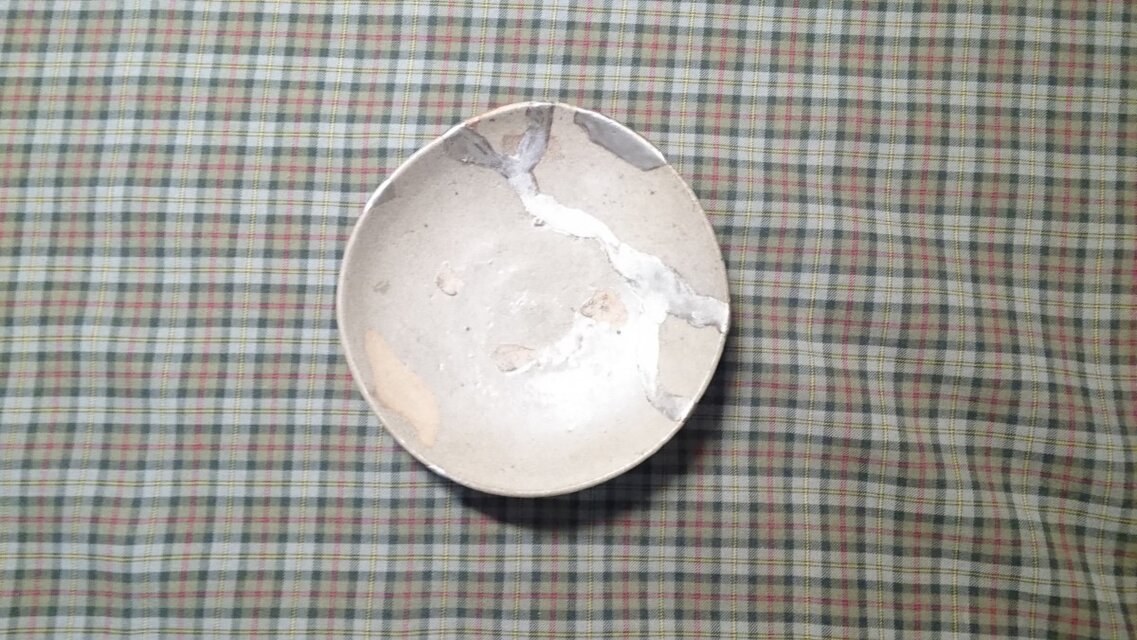 以前、骨董市で買い求めた唐津焼の陶片を呼び継いだ小皿です。