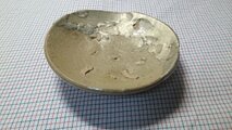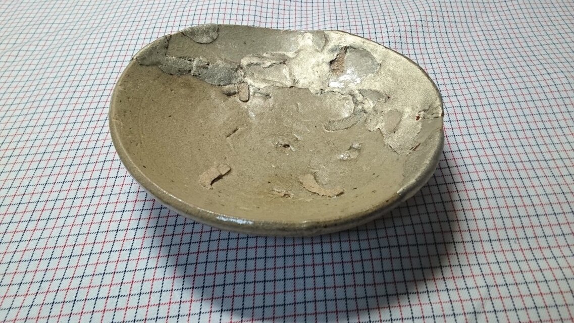 以前、骨董市で買い求めた唐津焼の陶片を呼び継いだ小皿です。