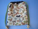 生成り地にかわいい十二支がいっぱいの巾着です。