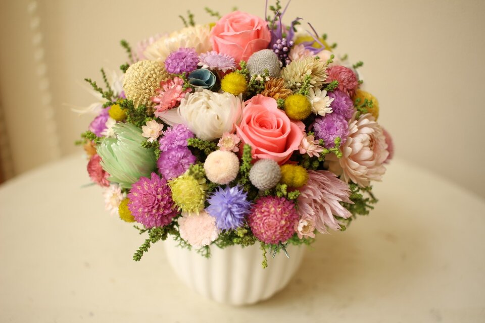 プリザーブドフラワーやドライフラワーは繊細ですので慎重にラッピング、梱包をいたします。