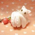 にゃんこのしっぽ○苺マカロンストラップ○白猫○ミニチュア