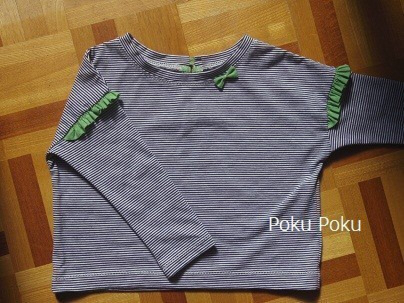 さらっとしたボーダー生地にフリルを組み合わせた春~初夏にぴったりの