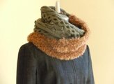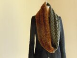 アラン模様とファーをつないだハンサムかわいい手編みのスヌードができました。