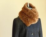 ファーはポリエステル主体のファーヤーン(フェイクファーの糸)で編んでいますので、伸びがあり、首に寄り添ってくれます。