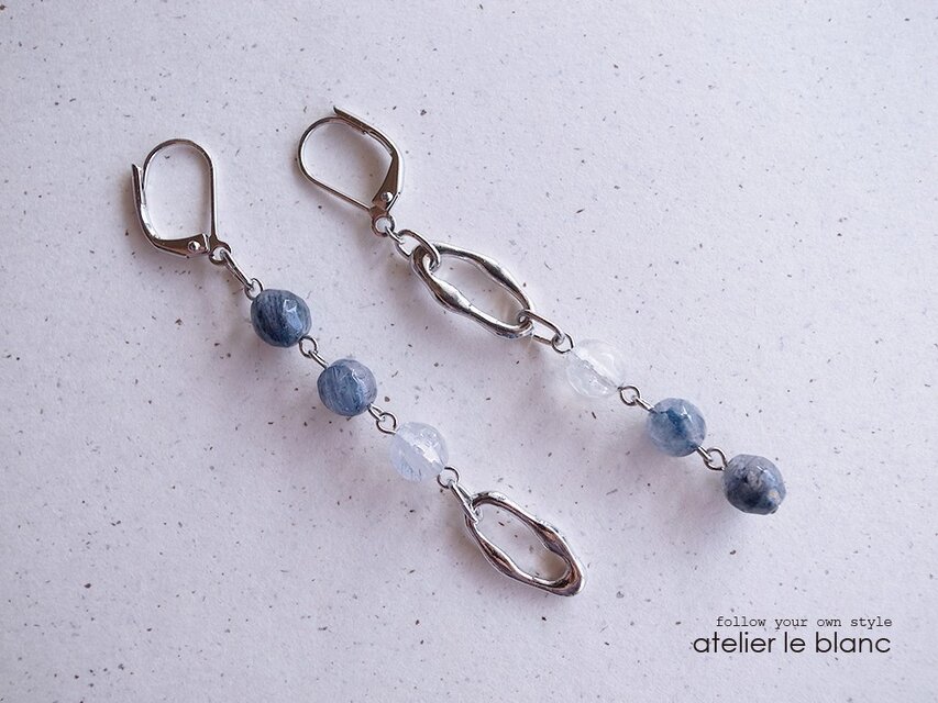 希少石のブルールチルクオーツをグラデーションにしたロングピアスです。