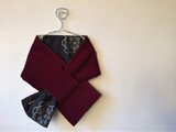 本日届きました。銘仙の柄も別珍の色味もとても素敵ですね。お手紙も以前購入した襟巻と同じ柄のプチストールもお心遣いに感謝いたします。この秋冬も3枚とも大切に使わさせていただきます。裏地の色選びの段階からからずっとワクワクし待って居りました。本当に価値のある買い物をさせていただき有難うございました。