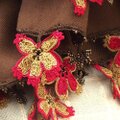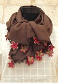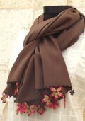レースの花付き パシュミナストール PS136 チョコレート・ブラウン