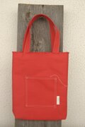 8号帆布を使った縦長のバッグです。ランチタイムにお財布、携帯、手帳、ハンカチなどを持って行くのにちょうど良い大きさです。